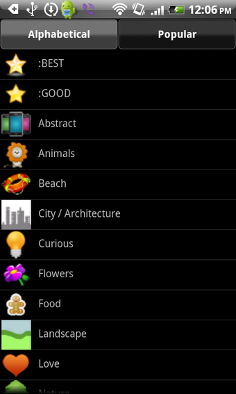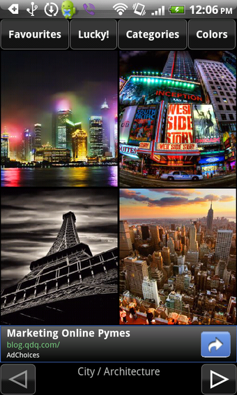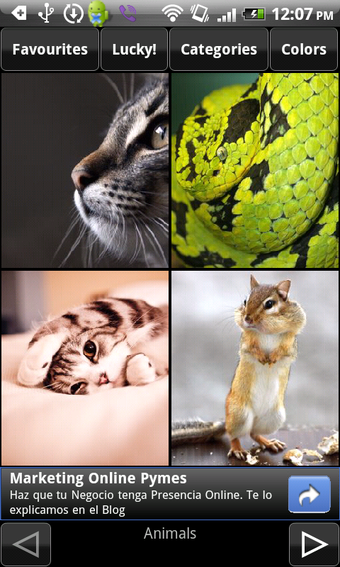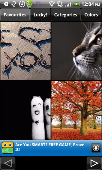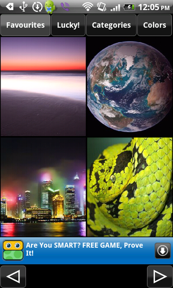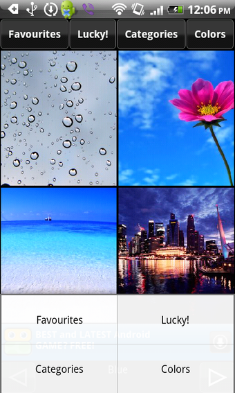 Doorspit je liever eerst het aanbod van Achtergronden, dan filter je met de knoppen in het hoofdmenu op categorie, populariteit of kleur. De applicatie biedt enkel en alleen kwalitatief hoogstaande prenten, dus het moet geen probleem vormen een mooie wallpaper te vinden. Het enige punt van irritatie is dat het laden van foto's soms wat lang duurt.